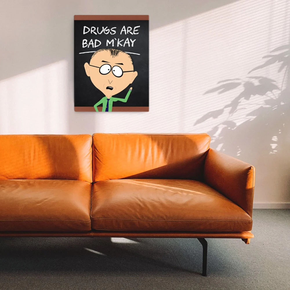 As a wise counselor from South Park Elementary School once said, “Drugs are bad, m’kay?” Hang this South Park Mr. Mackey Drugs Are Bad Gallery Wrapped Canvas up to remind visitors that smoking is bad, alcohol is bad, and drugs are bad (...m’kay?). No matter where you hang it, this canvas is sure to make any South Park fan smile.